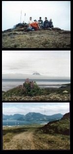 Date: Tue, 10 Oct 2000 11:07:00 EDT Here are a few of the pictures of Adak that I have with me. I hope that you enjoy them. 1. The group photo is of the NAVCOMTELSTA Det Adak hike to the top of Mt. Adagdak. It was about the end of October in 1995. It had started to snow while we were at the top, and the dusting helped "grease" the way for the tundra slide down. 2. The summers were always beautiful. The wild flowers (lupine) overlooking Shagak Bay with Mt. Kanaga puffing in the back ground as usual. 3. Razorback Mountain is a good back drop for the third picture. It was taken from the "dam" road just above our command (the three 300 foot towers and the 800 foot tower) on the lower slopes of Mt. Moffett. I spent just under two years on the Island, but would go back in a heart beat. Thanks for keeping the memories alive. Please use the pictures if you can. ET2 (SW) Khederian, Clifford E. |